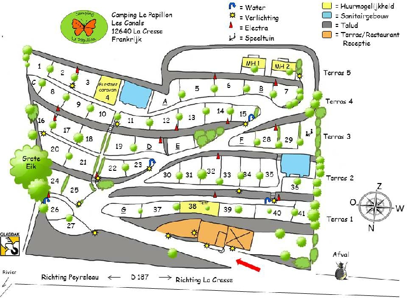 Voor de indeling van de camping vindt u onderaan deze pagina een plattegrond.